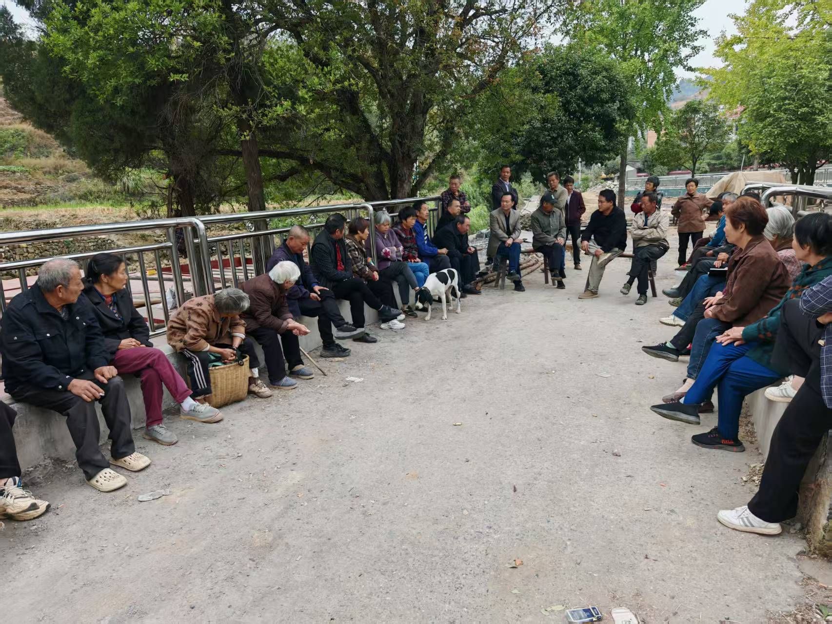 2025 年 10 月 27 日,工作队联合村 “两委”,在小坪村东冲片区召开屋场恳谈会。工作队、村“两委”成员及东冲片区村民代表围坐一堂,以“拉家常”形式聚焦拦水坝修缮工程,听取民情诉求,重点调解相关用水矛盾,切实将关怀送到村民心坎上。